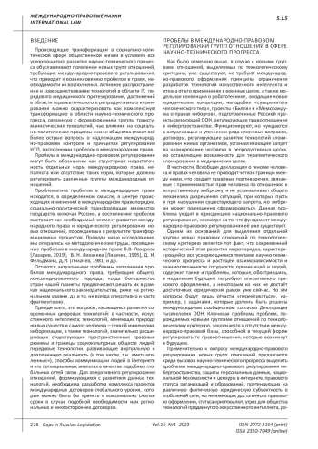 Однако на международно-правом уровне число актуальных источников правового регулирования данных проблемных аспектов новых групп отношений чрезвычайно мало. В большинстве случаев регулирование данных вопросов посредством международных договоров ограничивается лишь двусторонними договорами обеспечении кибербезопасности и сотрудничестве в области информационных технологий (такие как, например, Соглашение между Правительством Российской Федерации и Правительством Республики Индии о сотрудничестве в области обеспечения безопасности в сфере использования информационно-коммуникационных технологий). Среди крупных региональных соглашений ключевым, но практически единственным остаётся резолюция Европейского парламента о нормах гражданского права по робототехнике 2017 г. Она примечательна формализацией законов роботехники фантаста А. Азимова в международно-правовом поле, однако также носит достаточно узкую направленность. Пожалуй, единственным международным договором по регулированию киберпространства, претендующим на универсальность, остаётся Будапештская конвенция о компьютерных преступлениях 2001 г., принятая 20 лет назад на региональном уровне (Советом Европы)