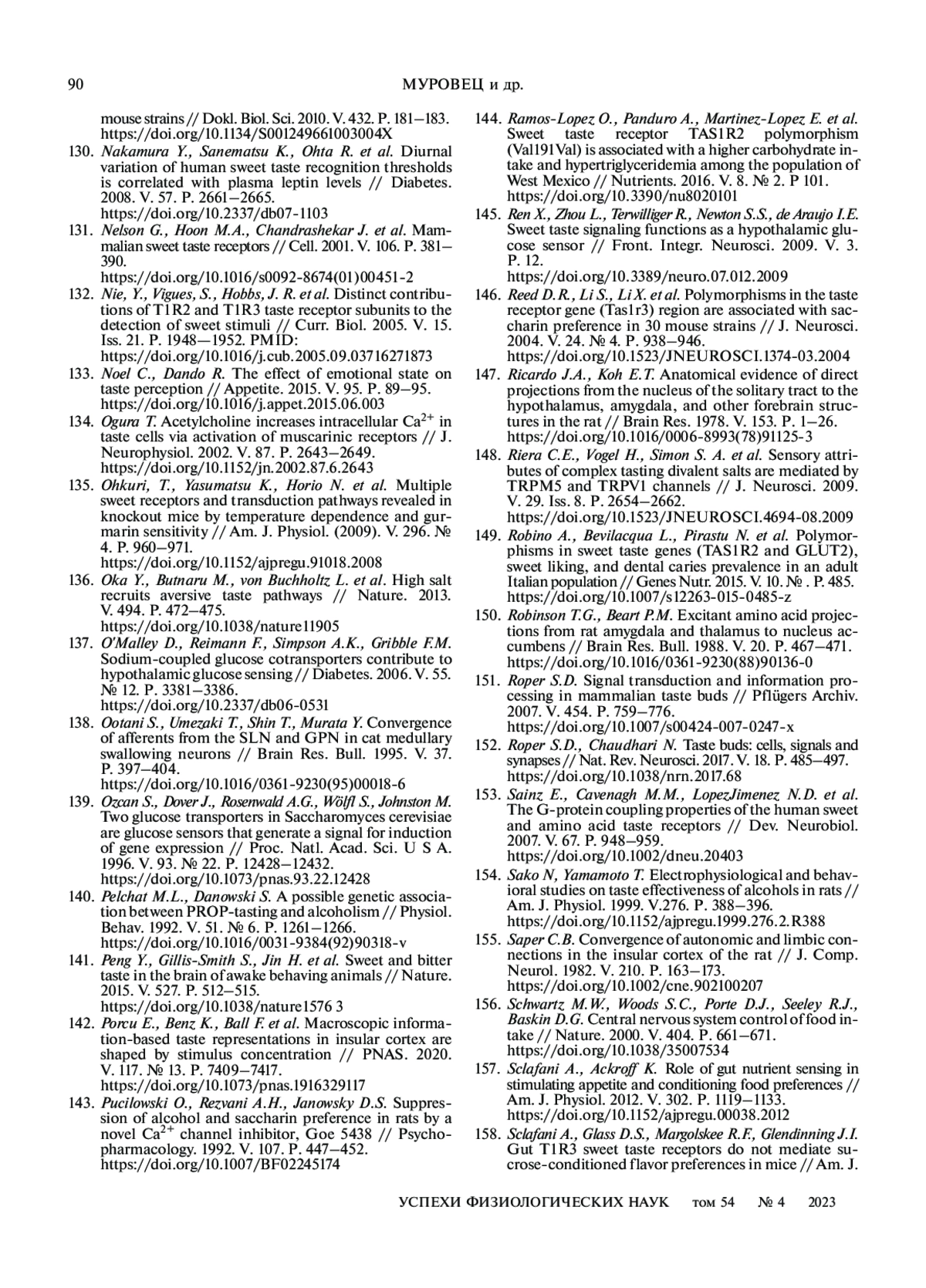 186. von Molitor E., Riedel K., Krohn M. et al. Sweet taste is complex: signaling cascades and circuits involved in sweet sensation // Front. Hum. Neurosci. 2021. V. 15. P. 667709. DOI: 10.3389/fnhum.2021.667709 EDN: QMXKCA