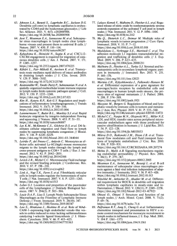 91. Pflicke H., Sixt M. Preformed portals facilitate dendritic cell entry into afferent lymphatic vessels // J. Exp. Med. 2009. V. 206. P. 2925–2935. DOI: 10.1084/jem.20091739