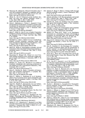 99. Russo E., Teijeira A., Vaahtomeri K. et al. Intralymphatic CCL21 promotes tissue egress of dendritic cells through afferent lymphatic vessels // Cell Rep. 2016. V. 14. P. 1723–1734. DOI: 10.1016/j.celrep.2016.01.048