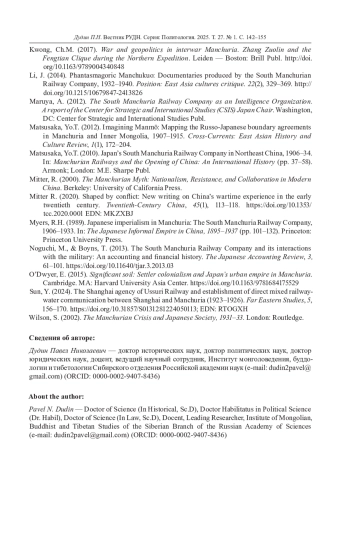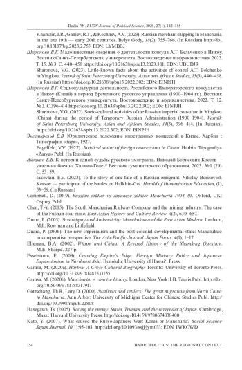 Статья: ВОДА И ВЛАСТЬ В МАНЬЧЖУРИИ В КОНЦЕ ХIХ - ПЕРВОЙ ТРЕТИ XX В.: ГЕОПОЛИТИЧЕСКОЕ СОПЕРНИЧЕСТВО И БОРЬБА НАРРАТИВОВ В РУССКОЯЗЫЧНЫХ И АНГЛОЯЗЫЧНЫХ НАУЧНЫХ ТРУДАХ (2025)