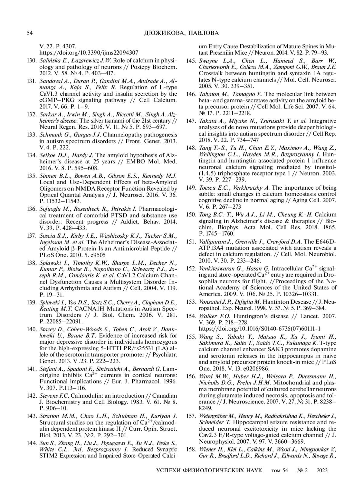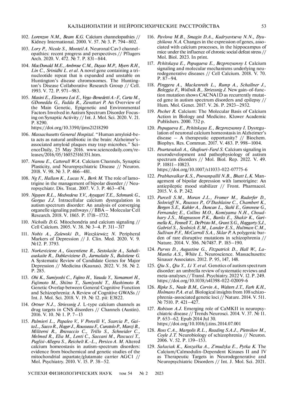 121. Pourtavakoli A., Ghafouri-Fard S. Calcium signaling in neurodevelopment and pathophysiology of autism spectrum disorders // Mol. Biol. Rep. 2022. V. 49. P. 10811–10823. DOI: 10.1007/s11033-022-07775-6 EDN: DPFZAF