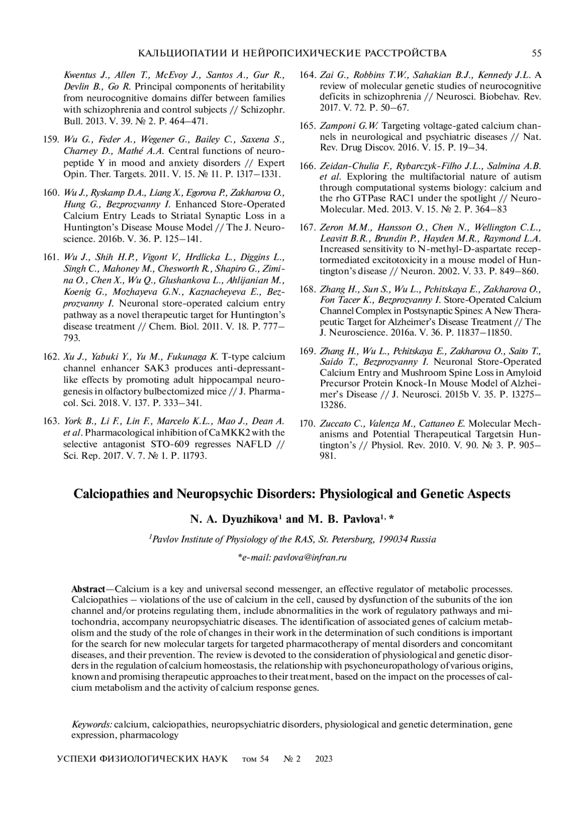 79. Jaskova K., Pavlovicova M., Jurkovicova D. Calcium transporters and their role in the development of neuronal disease and neuronal damage // Gen. Physiol. Biophys. 2012. V. 31. № 4. P. 375–382.