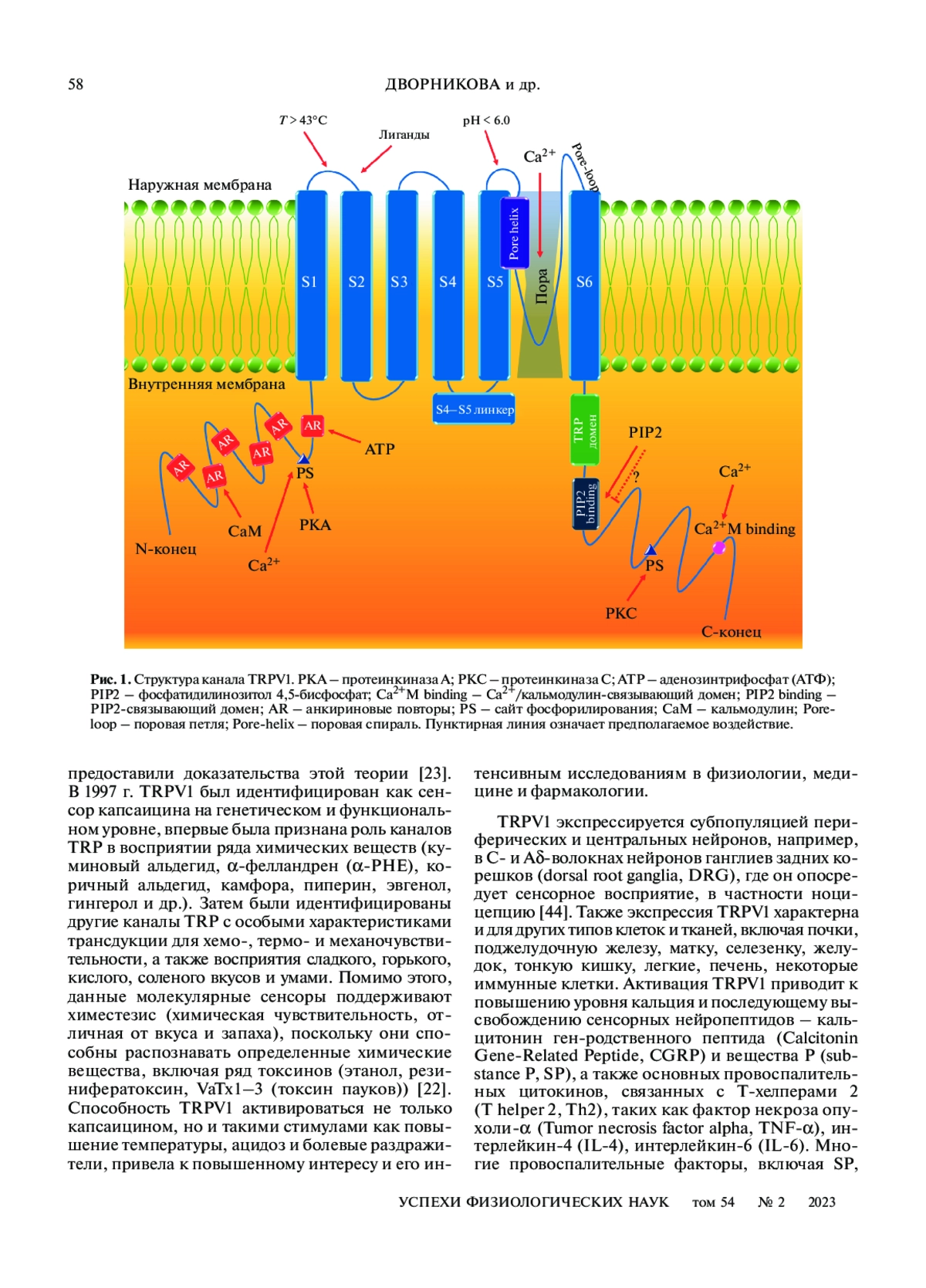 58. Yang F. et al. Structural mechanism underlying capsaicin binding and activation of the TRPV1 ion channel // Nat. Chem. Biol. 2015. V. 11. №. 7. P. 518. DOI: 10.1038/nchembio.1835