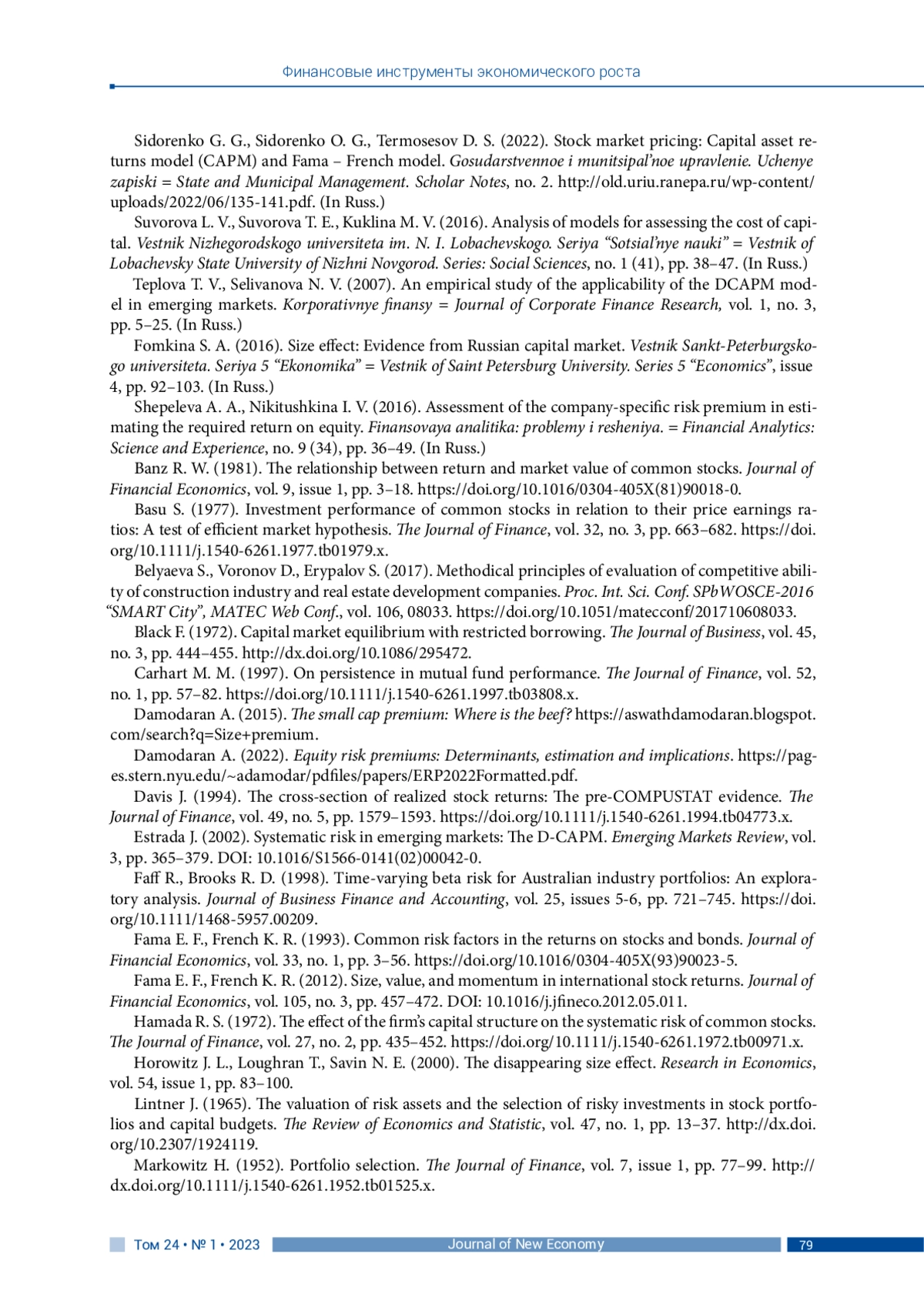 24. Fama E. F., French K. R. (1993). Common risk factors in the returns on stocks and bonds. Journal of Financial Economics, vol. 33, no. 1, pp. 3-56. DOI: 10.1016/0304-405X(93)90023-5