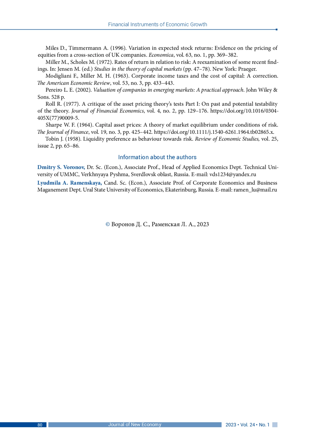 22. Estrada J. (2002). Systematic risk in emerging markets: The D-CAPM. Emerging Markets Review, vol. 3, рр. 365-379. DOI: 10.1016/S1566-0141(02)00042-0