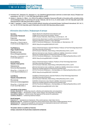 3. Mayurnikova, L.A.; Koksharov, A.A.; Krapiva, T.V. i dr. Obogashcheniye pishchevykh produktov kak faktor profilaktiki mikronutriyentnoy nedostatochnosti [Fortification of food products as a factor in the prevention of micronutrient deficiency]. Tekhnika i tekhnologiya pishchevykh proizvodstv. 2020. Vol. 50, No. 1. Pp. 124-139. 10.21603/2074-9414-2020-1-124-139. (in Russ.). DOI: 10.21603/2074-9414-2020-1-124-139.EDN EDN: NPHEOS