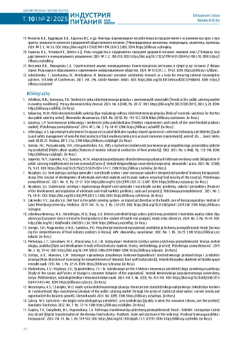 12. Печеная Л.Т., Савватеев Е.В., Афанасьева Г.А. и др. Состояние и тенденции развития рынков пищевой промышленности: теория, методология, практика // Пищевая промышленность. 2019. № 5. С. 39-43. 10.24411/0235-2486-2019-10069. DOI: 10.24411/0235-2486-2019-10069.EDN EDN: PNAIZC