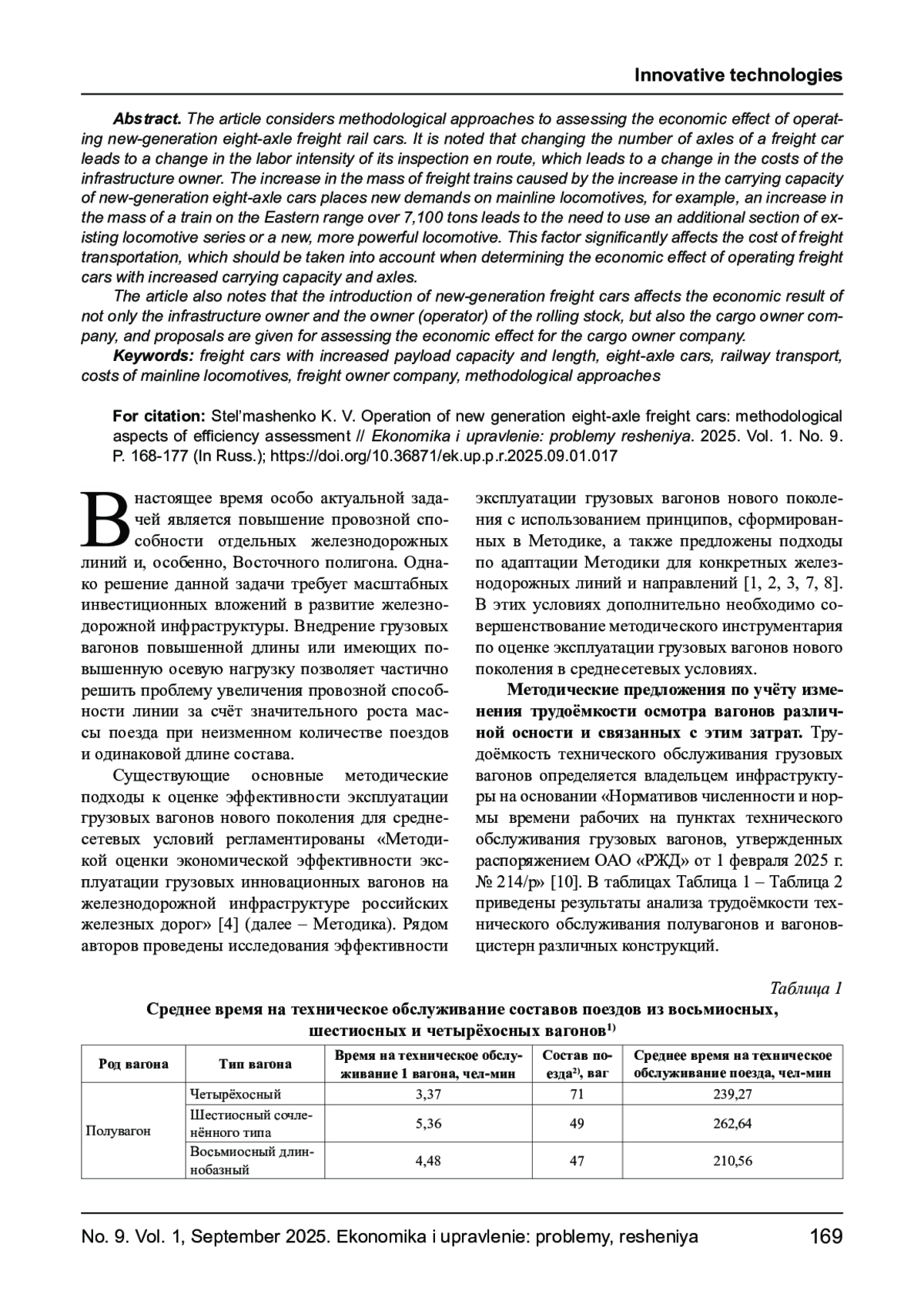 8. Мирошниченко, О. Ф. Методология расчета финансового результата для владельца инфраструктуры от повышения провозной способности направления при перевозках в вагонах повышенной грузоподъемности [Электронный ресурс] / О. Ф. Мирошниченко, А. Е. Огинская. Текст: электронный // Вестник Научно-исследовательского института железнодорожного транспорта. - 2019. - Т. 78. - № 1. - С. 33-40. Режим доступа: 10.21780/2223-9731-2019-78-133-40 (дата обращения 06.08.2025). DOI: 10.21780/2223-9731-2019-78-133-40( EDN: AJBAQK