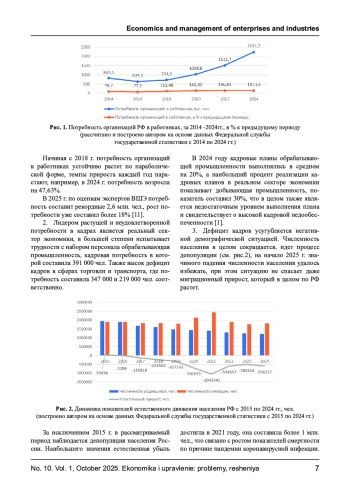 На основе данных 2014-2024 гг. был проведен анализ особенностей кадрового кризиса и причин его возникновения. Одними из основных причин являются: демографический кризис, ужесточение миграционной политики и кризис подготовки кадров с актуальными компетенциями.