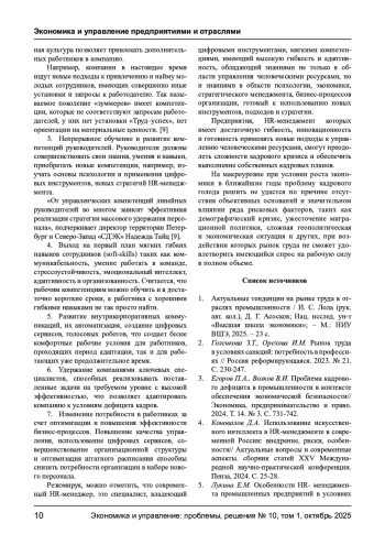 Статья: НОВЫЕ ПОДХОДЫ И КОМПЕТЕНЦИИ HR-МЕНЕДЖМЕНТА В СОВРЕМЕННЫХ УСЛОВИЯХ ДЕФИЦИТА КАДРОВ (2025)
