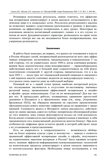 Статья: СОЦИАЛЬНЫЕ МЕДИА КАК АЛЬТЕР ЭГО РЕАЛЬНОСТИ: О ЧЕМ ГОВОРИТ АФФЕКТИВНАЯ ПОЛИТИЧЕСКАЯ ПОЛЯРИЗАЦИЯ? (2025)