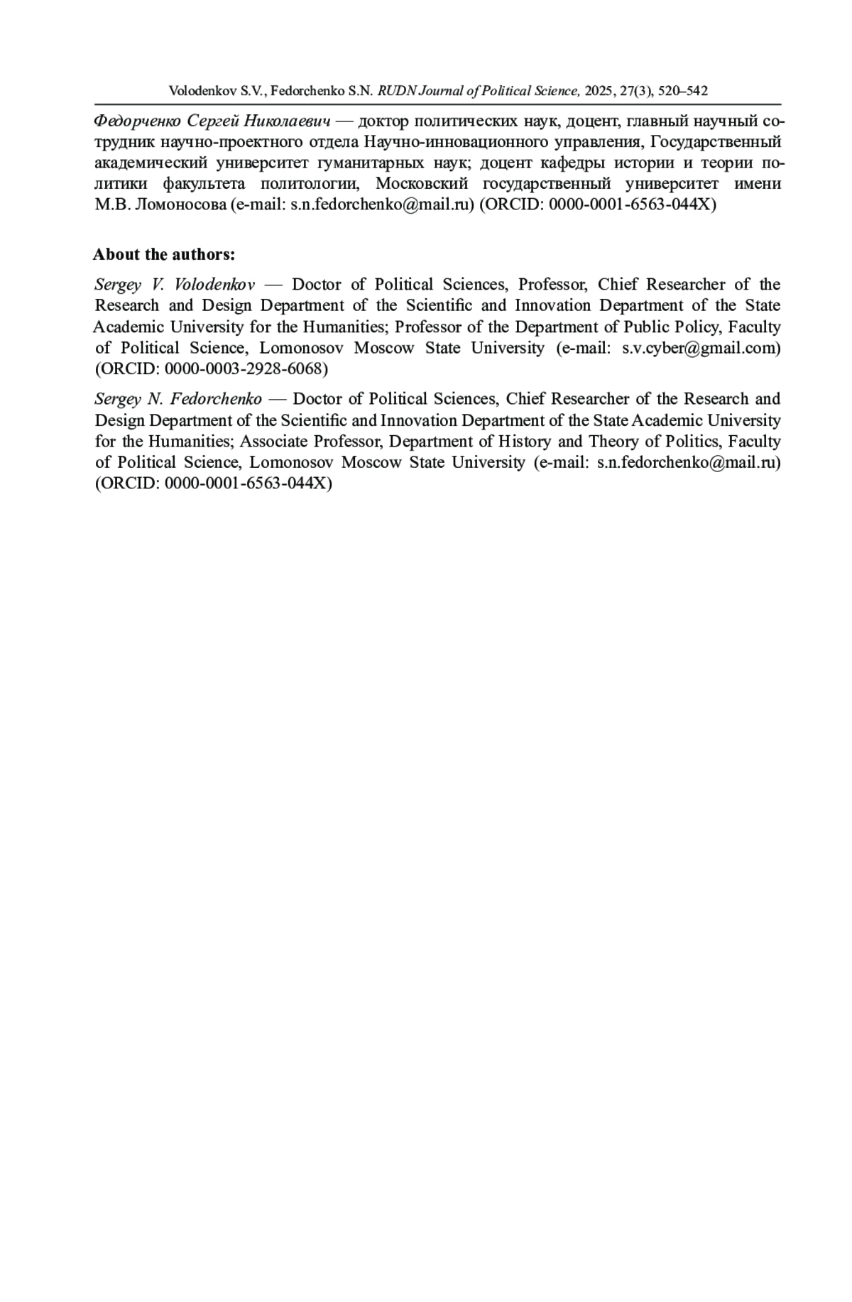 Автор (ы): Володенков Сергей Владимирович, ФЕДОРЧЕНКО СЕРГЕЙ НИКОЛАЕВИЧ