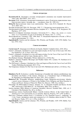 1. Балашова Ю. Б. Эволюция и поэтика литературного альманаха как издания переходного типа. СПб.: ИД СПбГУ, 2011. 363 с.