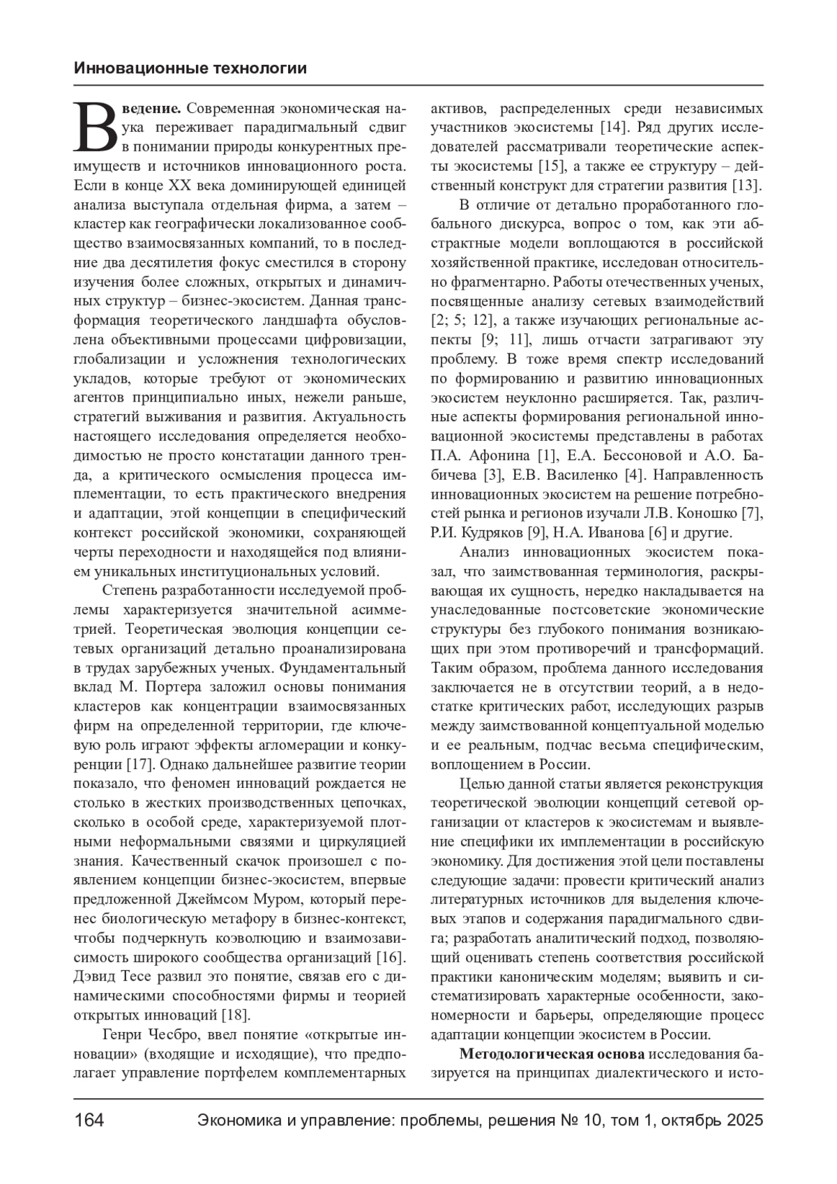 Актуальность исследования, представленная в статье, обусловлена парадигмальным сдвигом в экономической теории от анализа обособленных кластеров к изучению открытых инновационных экосистем.