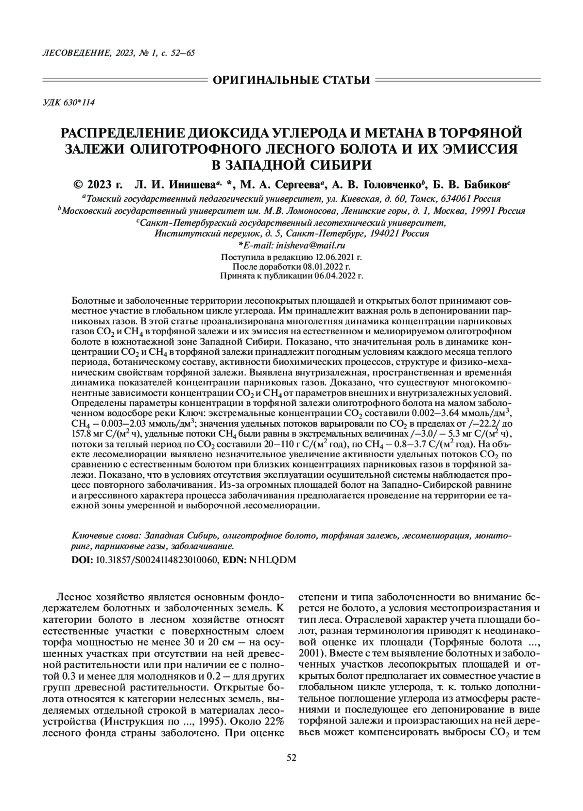 21. Наумов А.В. Углекислый газ и метан в почвах и атмосфере болотных экосистем Западной Сибири // Сибирский экологический журн. 2002. № 3. С. 313–318. EDN: YALQVF