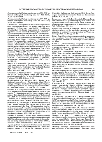 67. Jepsen J.U., Hagen S.B., Ims R.A. et al. Climate change and outbreaks of the geometrids Operophtera brumata and Epirrita autumnata in subarctic birch forest: evidence of a recent outbreak range expansion // J. Animal Ecology. 2008. V. 77. № 2. P. 257–264.