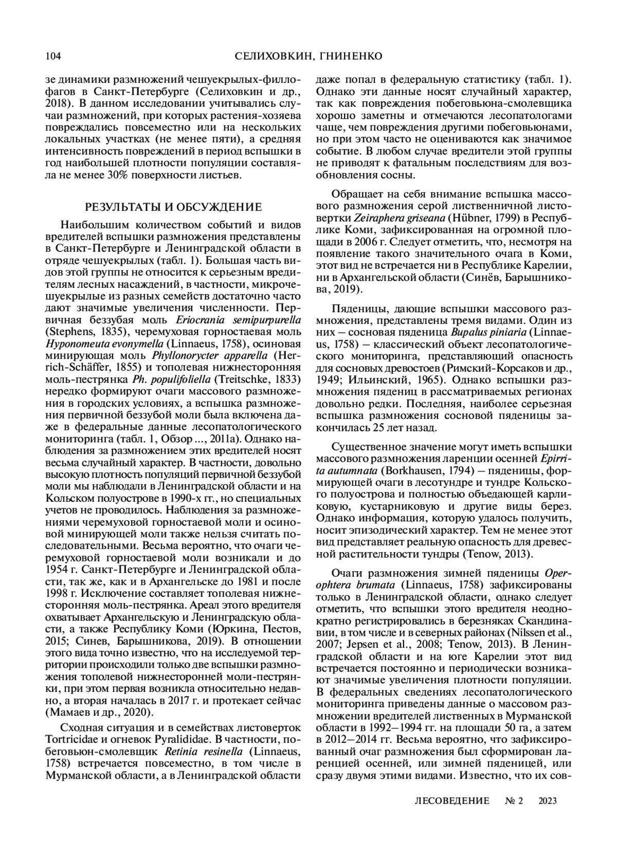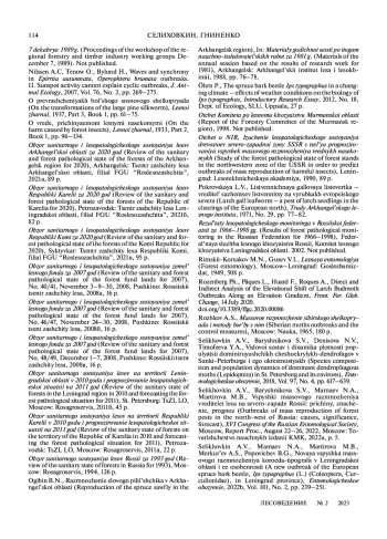 52. Селиховкин А.В., Мандельштам М.Ю., Поповичев Б.Г., Алексеев А.С. Роль вредителей в изменении состояния лесов на северо-западе европейской части России // Лесоведение. 2022в. № 5 (в печати).