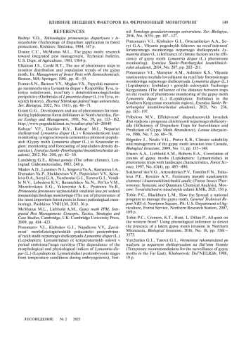 15. Grant G.G. Development and use of pheromones for monitoring lepidopteran forest defoliators in North America // Forest Ecology and Management. 1991. № 39. P. 153–162.