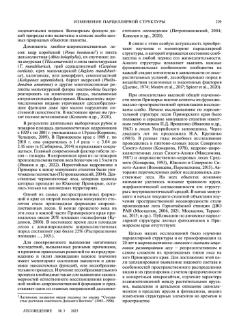 6. Иванов А.В., Иванова Е.В., Гамаева С.В. Изменение разнообразия хвойно-широколиственных лесов Южного Приморья в связи с рубками и пожарами // Экология. 2022. № 2. С. 1–8. EDN: ETLTCB