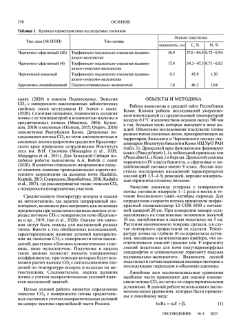 Эмиссия СО 2 (Rs) с поверхности почвы является крупнейшим потоком, обеспечивающим возврат диоксида углерода в атмосферу (BondLamberty, Thomson, 2010). Вместе с тем обобщенные оценки этого процесса характеризуются большими вариациями полученных значений как на региональном (Mukhortova et al., 2021), так и глобальном уровне (Hashimoto et al., 2015). Синтетический анализ, основанный на прямых измерениях дыхания почвы, был предложен как простое решение для глобальных расчетов потока СО2 (Sha et al., 2021). Для этих целей создаются базы данных, примерами которых являются материалы в работах (Mukhortova et al., 2020; Jian et al., 2021). Следовательно, накопление экспериментальных данных, поиск и верификация предикторов для оценки величины эмиссии СО2 с поверхности почв без прямых измерений продолжают оставаться актуальной задачей исследований (Jian et al., 2020)