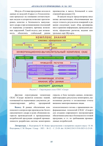 5. Егорова М. И. Организация системы контроля технологического потока производства сахара: современный подход / М. И. Егорова // Наука, питание и здоровье: сб. науч. тр. / Научно - практический центр Нан Беларуси по продовольствию. - Минск: Беларуская наука, - 2022. - С. 9-17.