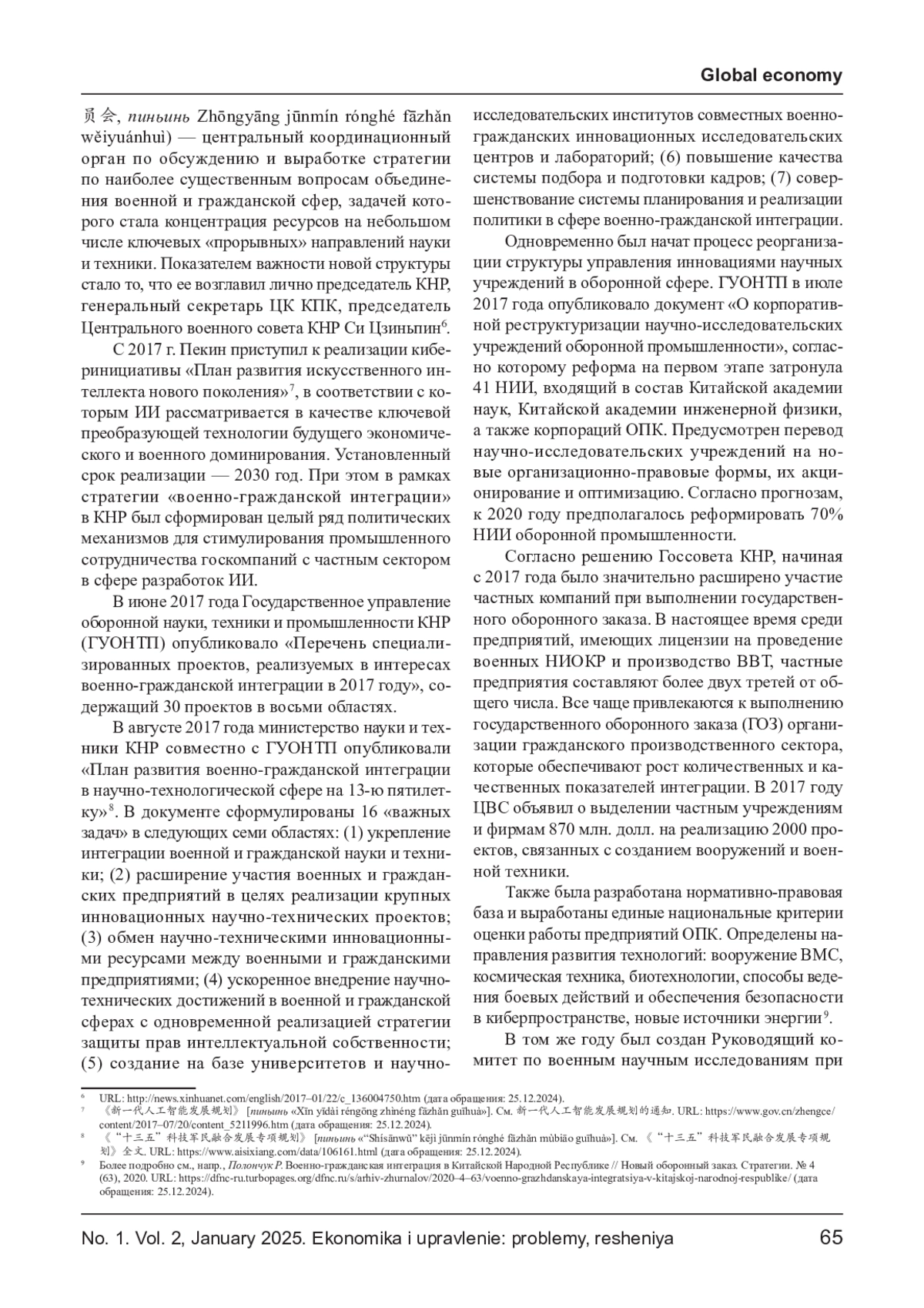 44. Полончук Р. Военно-гражданская интеграция в Китайской Народной Республике // Новый оборонный заказ. Стратегии. № 4 (63), 2020. URL: https://dfnc-ru.turbopages.org/dfnc.ru/s/arhiv-z hurnalov/2020-4-63/voenno- grazhdanskaya-integratsiya-v-kitajskoj-n arodnojrespublike/(дата обращения: 25.12.2024).