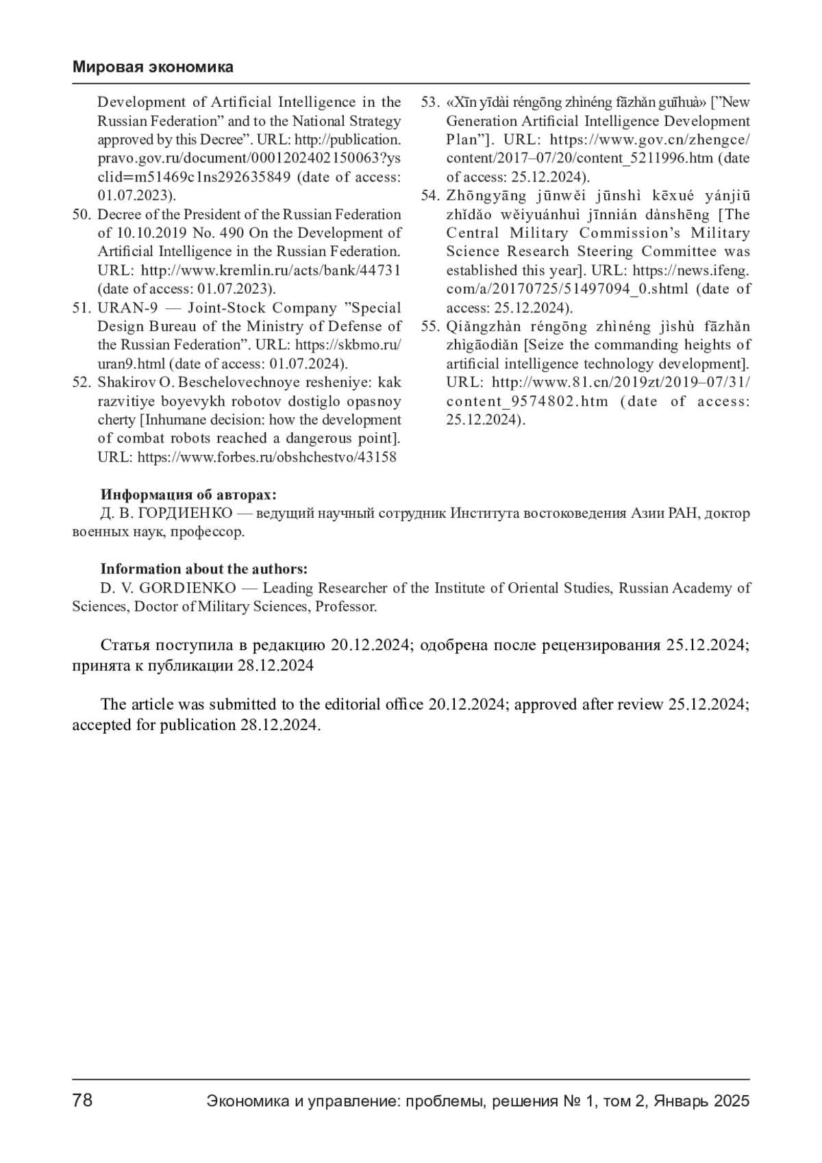 55. 抢占人工智能技术发展制高点 [рус. Захватить командные высоты развития технологий искусственного интеллекта]. URL: http://www.81.cn/2019zt/2019-07/31/content_9574802.htm (дата обращения: 25.12.2024).