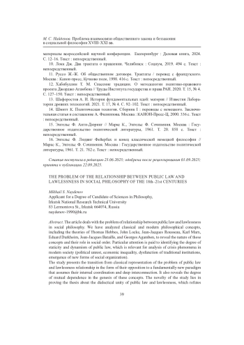 Статья: ПРОБЛЕМА ВЗАИМОСВЯЗИ ОБЩЕСТВЕННОГО ЗАКОНА И БЕЗЗАКОНИЯ В СОЦИАЛЬНОЙ ФИЛОСОФИИ XVIII-XXI ВВ (2025)
