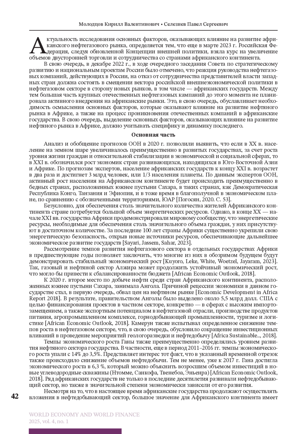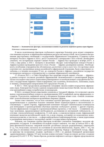 МОЛОДЦОВ К. В., СЕЛЕЗНЕВ П. С. РАЗВИТИЕ НЕФТЯНОГО РЫНКА В АФРИКЕ: ОСНОВНЫЕ ФАКТОРЫ ВЛИЯНИЯ // МИРОВАЯ ЭКОНОМИКА И МИРОВЫЕ ФИНАНСЫ. 2025. № 1, ТОМ 4