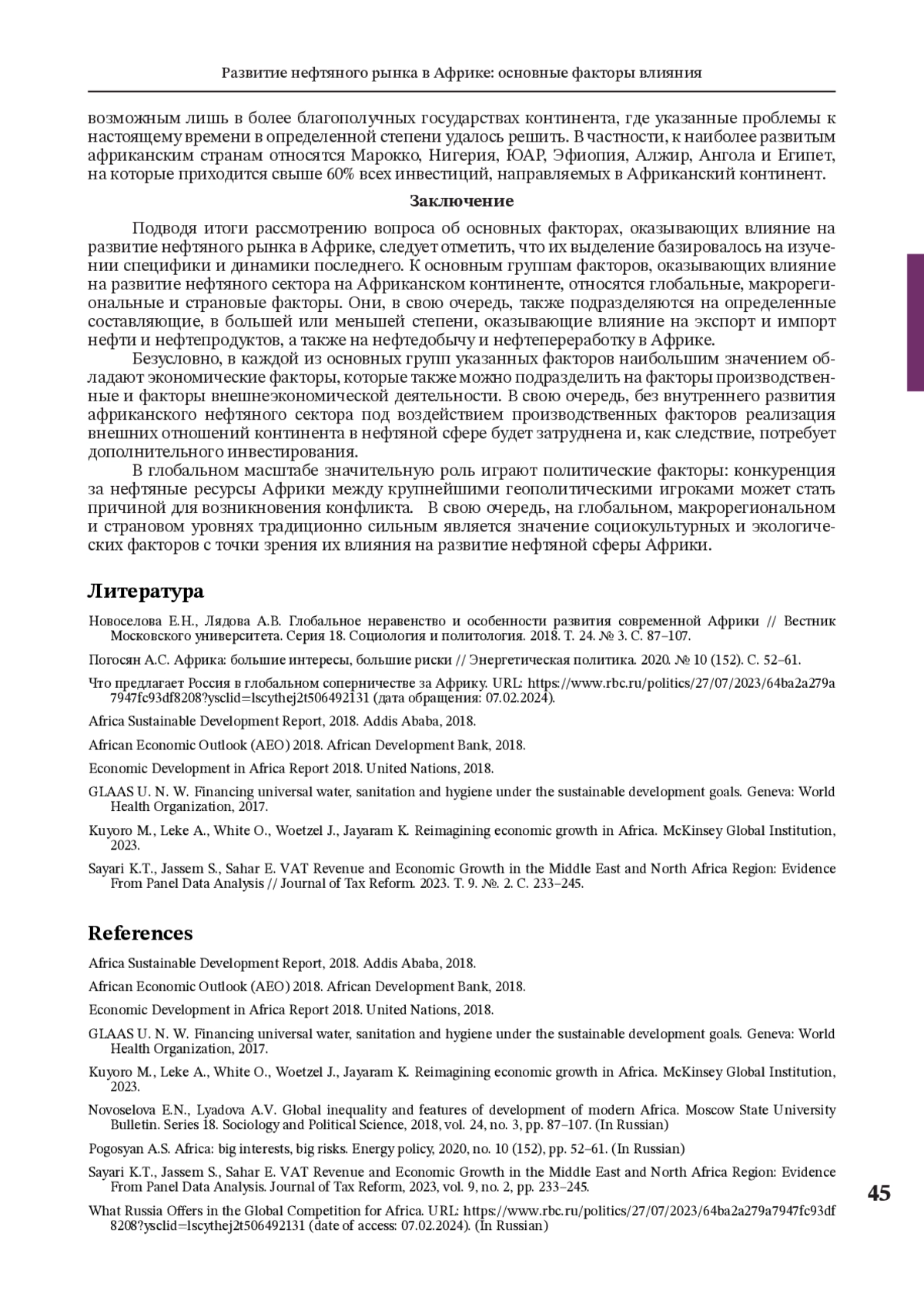 Статья: РАЗВИТИЕ НЕФТЯНОГО РЫНКА В АФРИКЕ: ОСНОВНЫЕ ФАКТОРЫ ВЛИЯНИЯ (2025)