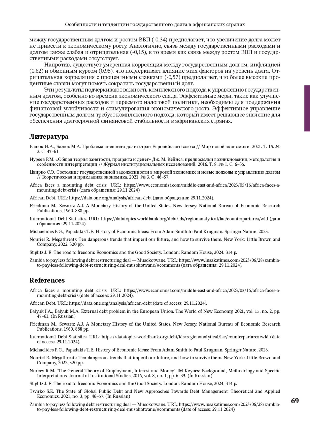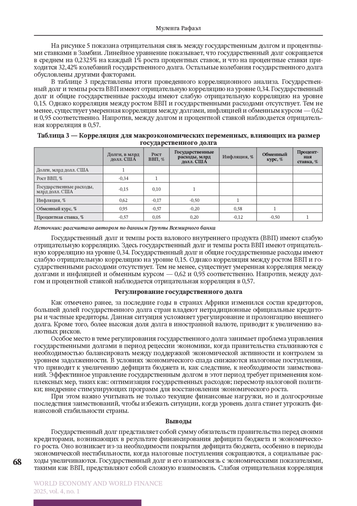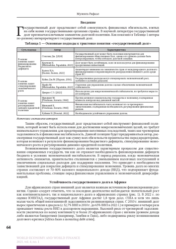МУЛЕНГА Р. ОСОБЕННОСТИ И ТЕНДЕНЦИИ ГОСУДАРСТВЕННОГО ДОЛГА В АФРИКАНСКИХ СТРАНАХ // МИРОВАЯ ЭКОНОМИКА И МИРОВЫЕ ФИНАНСЫ. 2025. № 1, ТОМ 4