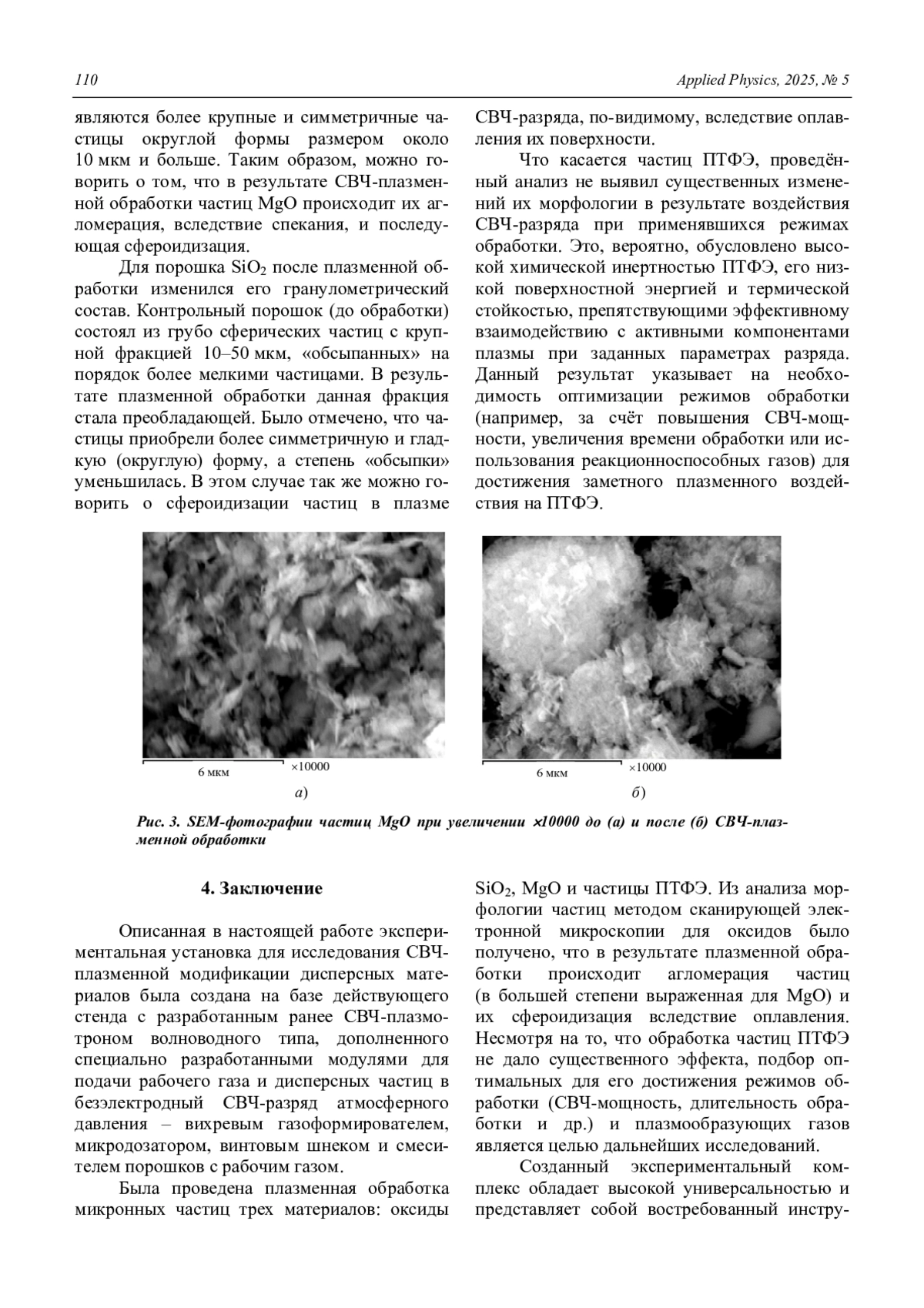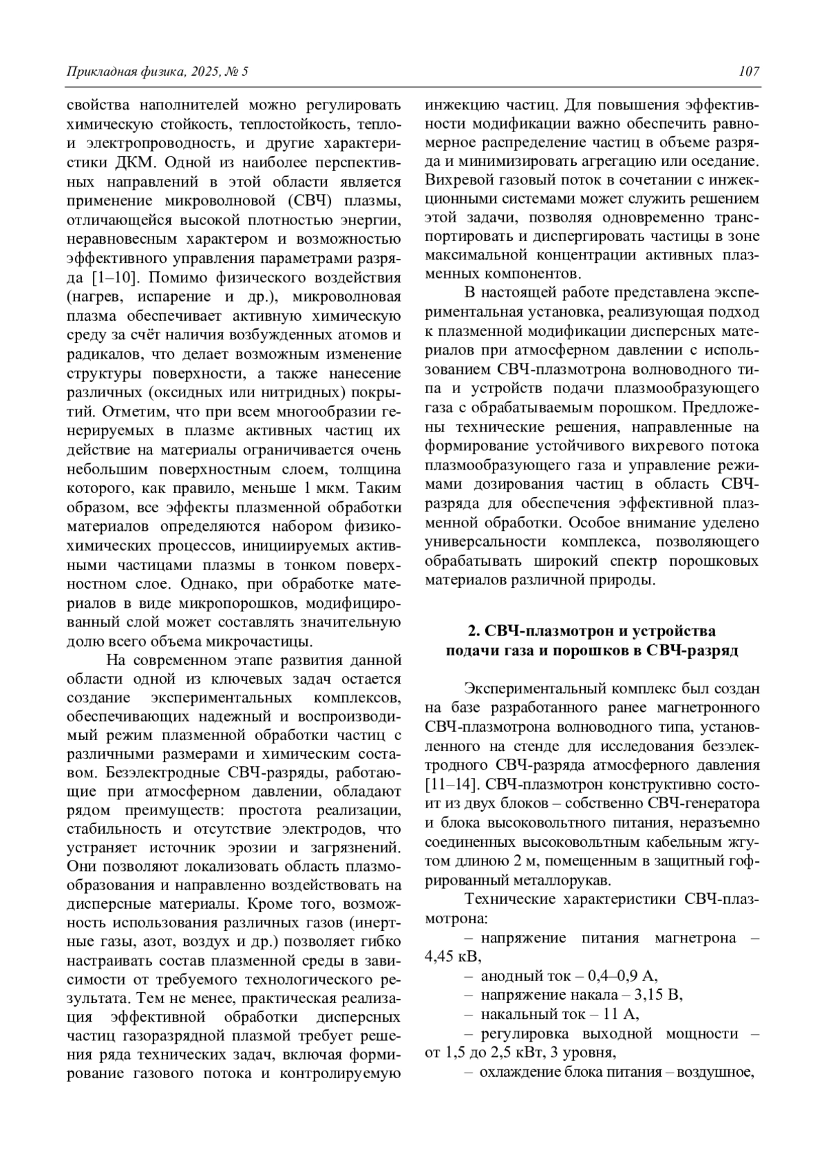 Статья: Экспериментальный комплекс для СВЧ-плазменной модификации дисперсных материалов при атмосферном давлении (2025)