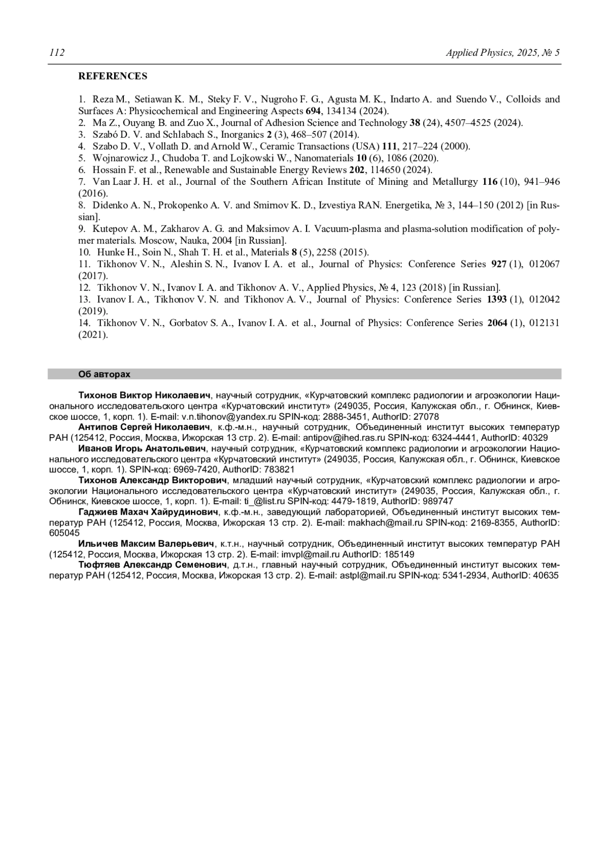 Журнал: ПРИКЛАДНАЯ ФИЗИКА