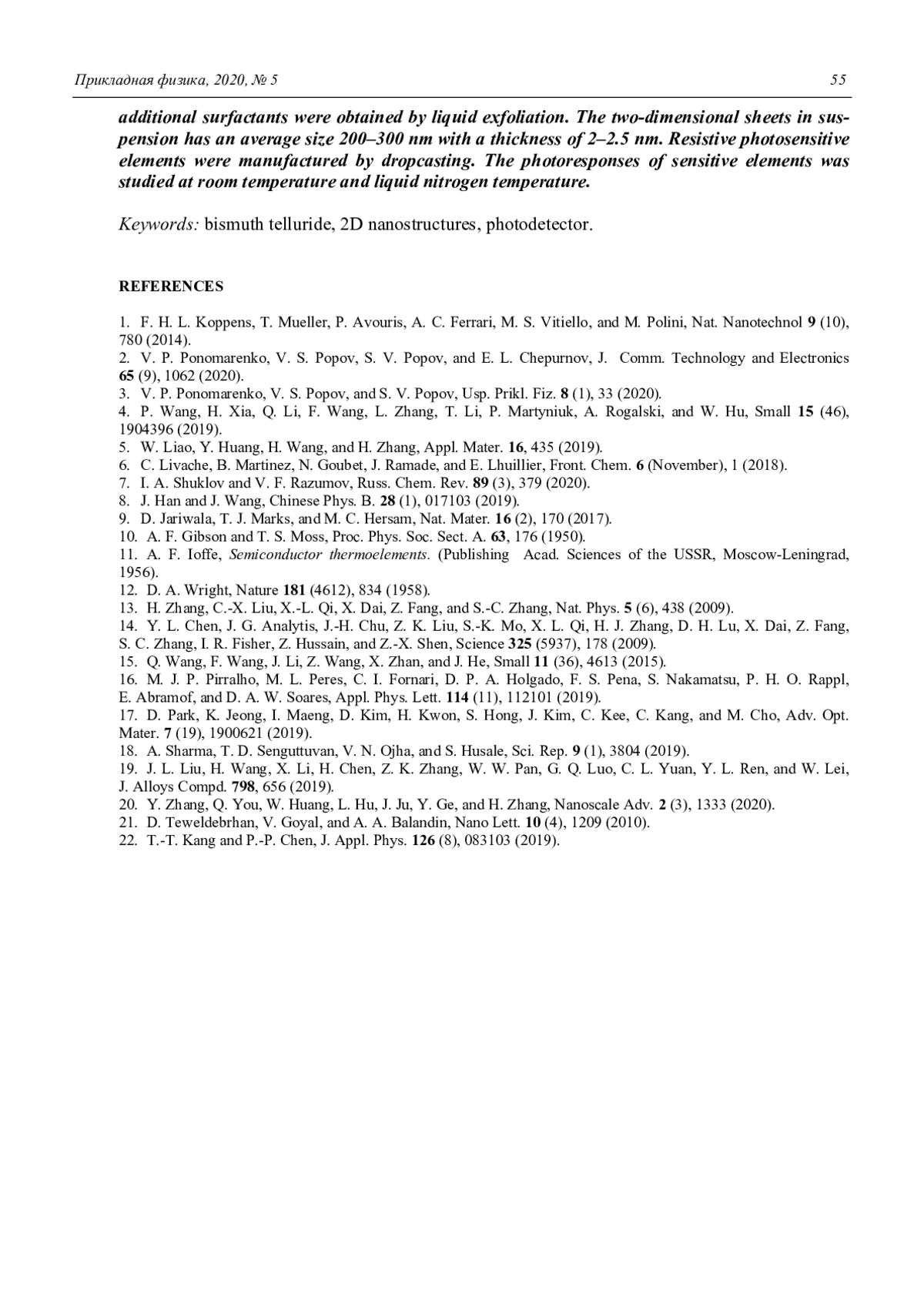 22. Kang T.-T., Chen P.-P. // J. Appl. Phys. 2019. Vol. 126. № 8. P. 083103.