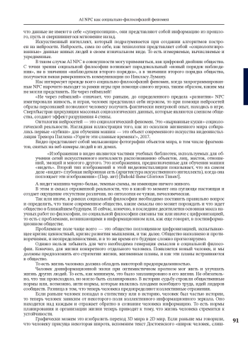 Автор рассматривает феномен AI NPC (неигровой персонаж с искусственным интеллектом) в социально-философском аспекте, как потенциальную модель для построения цифрового двойника общества. Общество в статье рассматривается в реалиях посткоммуникации. Цифровизация, порождающая новую цифровую реальность, строится на замкнутом цикле коммуникации, согласно представлениям о постнеклассической рациональности или о «наблюдении второго порядка» по Никласу Луману. Общество трансформируется за счет цикла коммуникации — от исследования пользователей через метаданные до формирования моделей идеальных цифровых объектов, благодаря внедрению искусственного интеллекта нового поколения. Философская проблема состоит в том, что цифровыми моделями становятся сложные холистические объекты: человек и общество, что одновременно затрагивает проблему целостного идеального объекта. Возникает риск нового экзистенциального кризиса, когда при столкновении сознания и цифровой реальности происходит феномен отзеркаливания, потери возможности для субъекта различать степень ценности цифрового двойника и реального субъекта в межличностной коммуникации. Неигровой персонаж с искусственным интеллектом также рассматривается автором, как продукт стремительного развития рынка видеоигр. Массовая культура всегда была катализатором различных исследований, например, потребительского поведения и исследования общественных процессов. Видеоигры благодаря усиленной системе сбора метаданных становятся более совершенным миром массовой культуры, способным быстро подстраиваться под любое поведение человека, предоставляя вариативный виртуальный опыт. Как пример отдельно рассматривается кейс компании Replica Studios Inc., представившей виртуальный мир неигровых персонажей с искусственным интеллектом с применением технологии распознавания голоса и интерпретации речи. Данная симуляция совершила прорыв в индустрии видеоигр в части опыта взаимодействия с неигровыми персонажами. Автор отмечает положительные аспекты данного феномена. Неигровые персонажи с искусственным интеллектом способны демонстрировать на практике реализацию модели мира, как симуляции, и в перспективе могут быть повсеместно использованы в общественных исследованиях: социологических, маркетинговых.