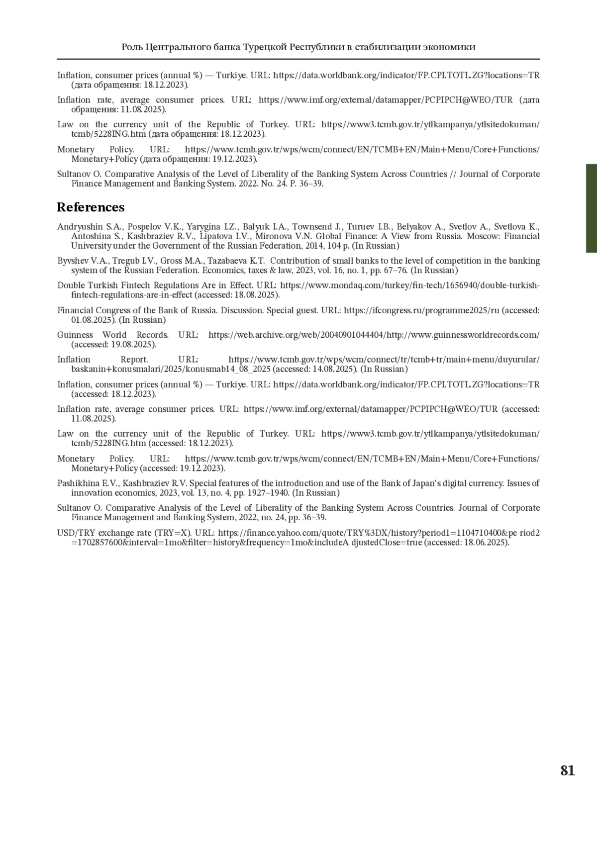 20. Inflation Report. URL: https://www.tcmb.gov.tr/wps/wcm/connect/tr/tcmb+tr/main+menu/duyurular/baskanin+konusmalari/2025/konusmab14_08_2025 (accessed: 14.08.2025). (In Russian).