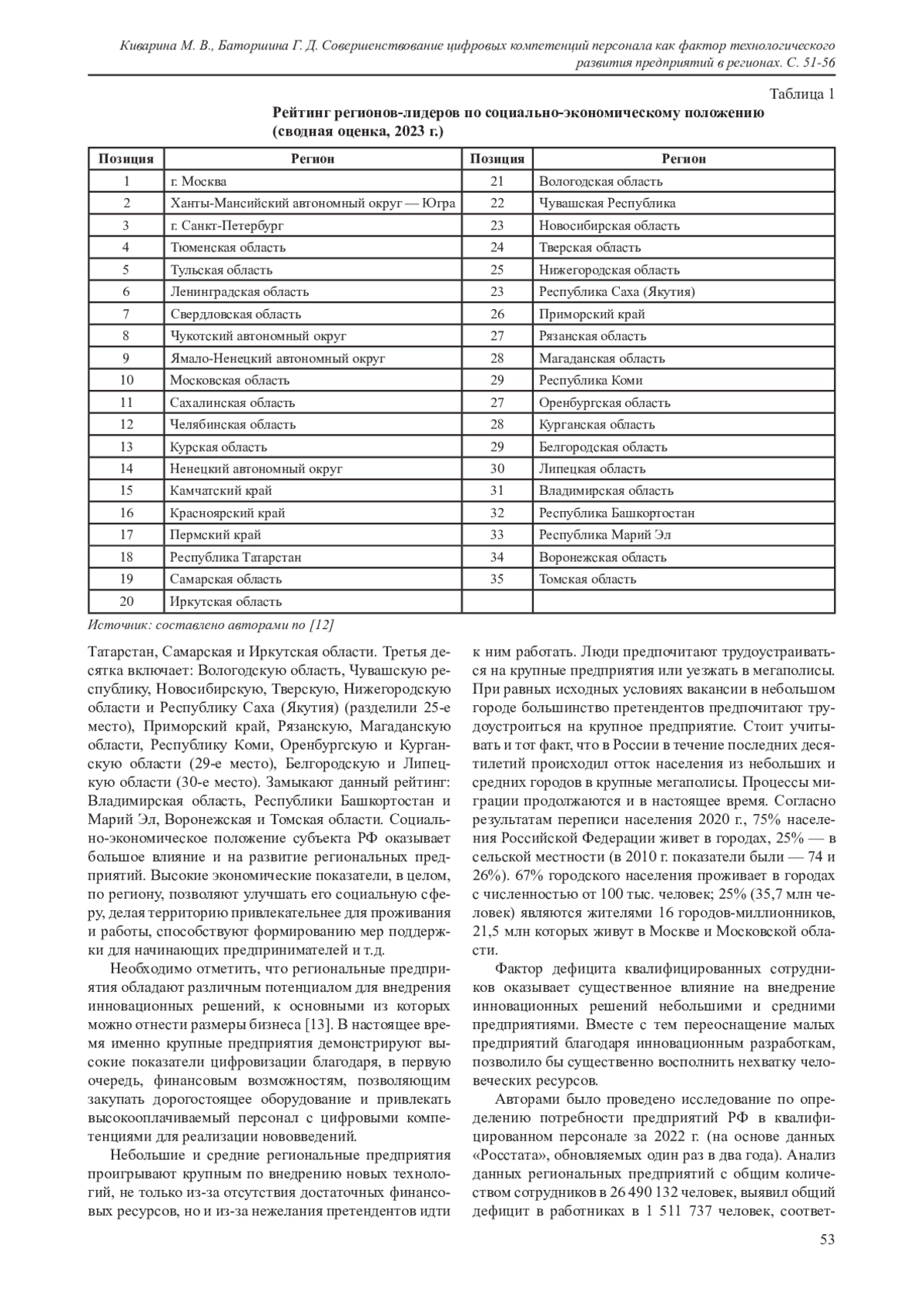 Статья: СОВЕРШЕНСТВОВАНИЕ ЦИФРОВЫХ КОМПЕТЕНЦИЙ ПЕРСОНАЛА КАК ФАКТОР ТЕХНОЛОГИЧЕСКОГО РАЗВИТИЯ ПРЕДПРИЯТИЙ В РЕГИОНАХ (2025)