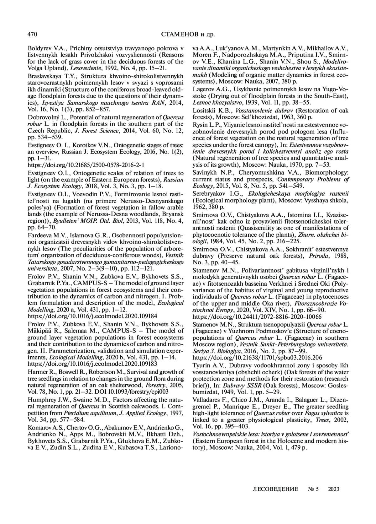 21. Dobrovolný L. Potential of natural regeneration of Quercus robur L. in floodplain forests in the southern part of the Czech Republic // J. Forest Science. 2014. V. 60. № 12. P. 534–539.