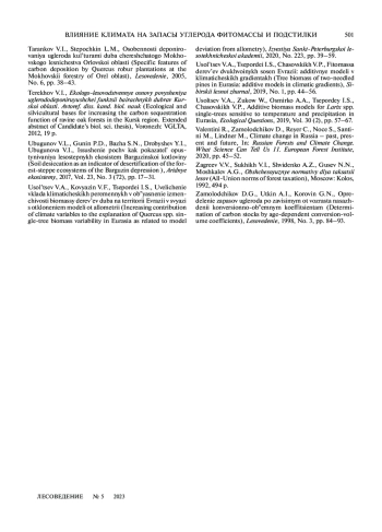 5. Замолодчиков Д.Г., Уткин А.И., Коровин Г.Н. Определение запасов углерода по зависимым от возраста насаждений конверсионно-объемным коэффициентам // Лесоведение. 1998. № 3. С. 84–93. EDN: YYIDIT