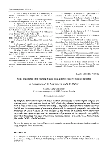 Стецюра С. В., Харитонова П. Г., Маляр И. В. Полумагнитное пленочное покрытие на основе фоточувствительного полупроводника 66