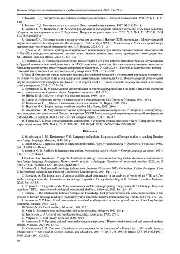 8. Чжао Ц. Отношения между фоновым знанием, фоновой информацией и пониманием в процессе иноязычного чтения // Иностранный язык и межкультурная коммуникация: материалы XVIII Международной студенческой научно-практической конференции (Томск, 15-18 апреля 2024 г.). Томск: Томский государственный педагогический университет, 2024. С. 172-176.