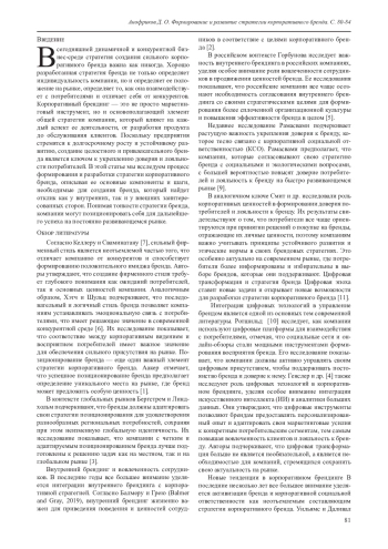 5. Горбунова А. Внутренний брендинг в российских компаниях: эмпирическое исследование // Российский журнал маркетинга. 2022. Т. 15. № 3. С. 56-70.