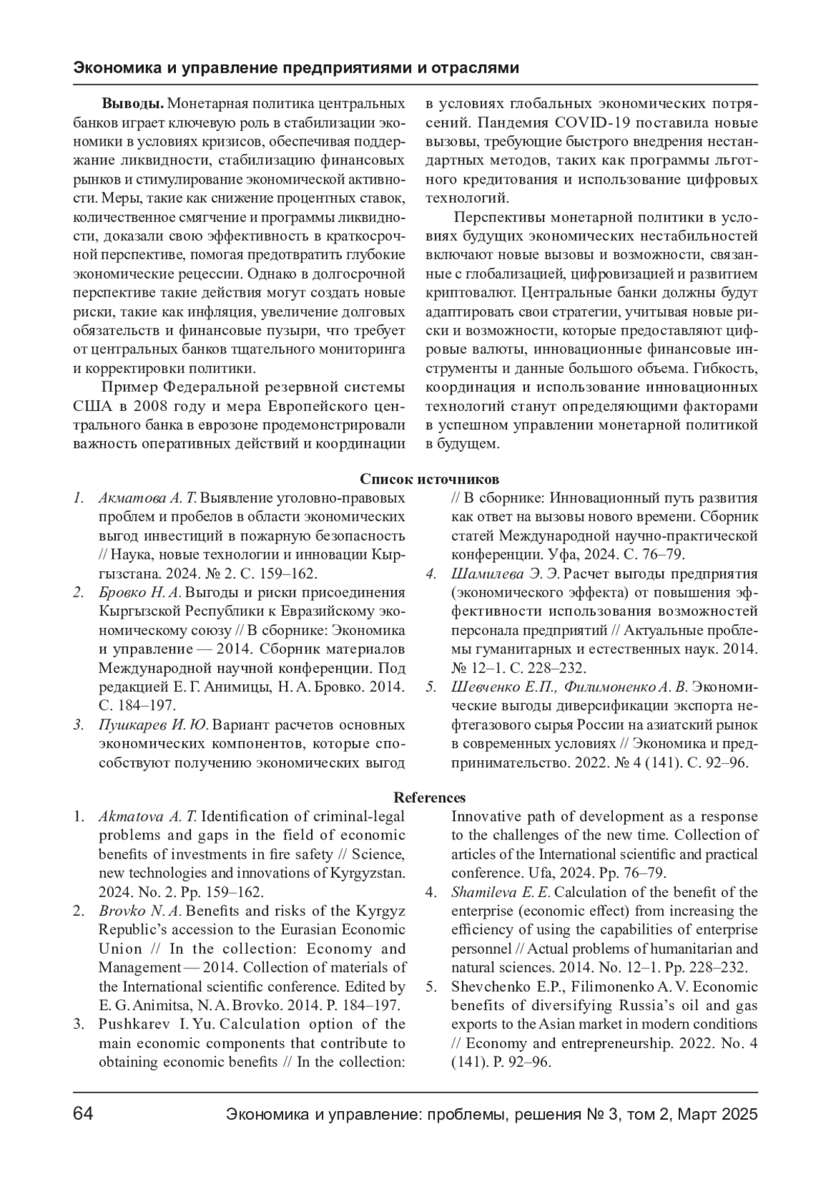 3. Пушкарев И. Ю. Вариант расчетов основных экономических компонентов, которые способствуют получению экономических выгод // В сборнике: Инновационный путь развития как ответ на вызовы нового времени. Сборник статей Международной научно-практической конференции. Уфа, 2024. С. 76-79. EDN: AERBEO