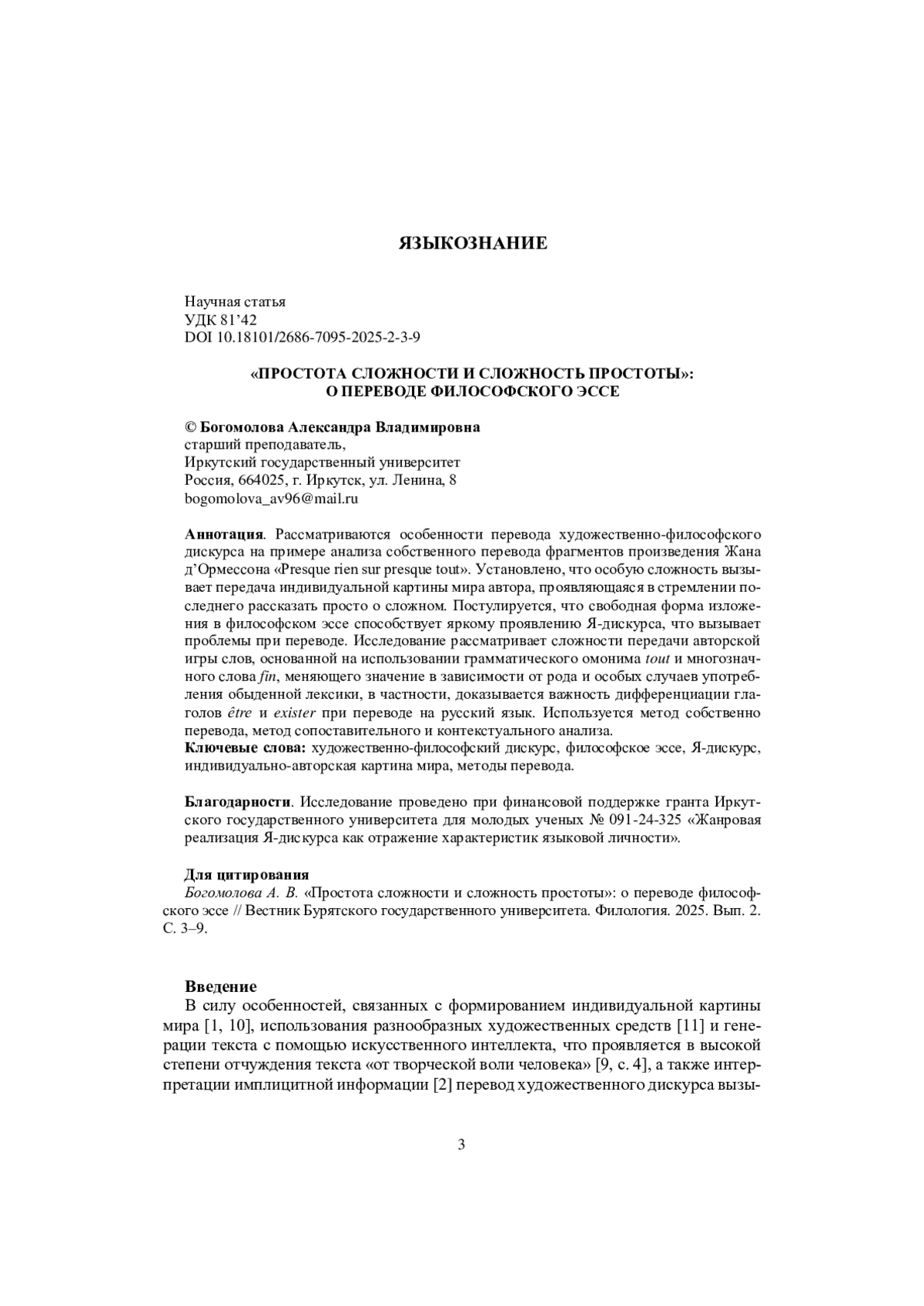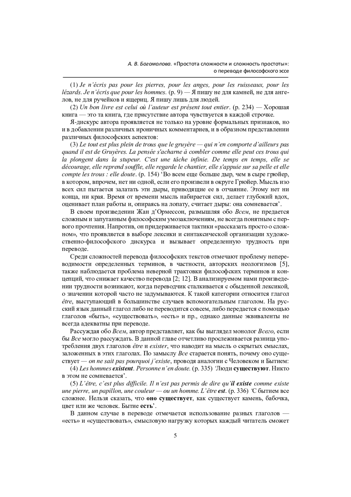 5. Курамина Н. В. “Непереводимости” в философских текстах // Вестник РГГУ. Сер. Философия. Социология. Искусствоведение. 2023. № 1. С. 161-168. Текст: непосредственный.