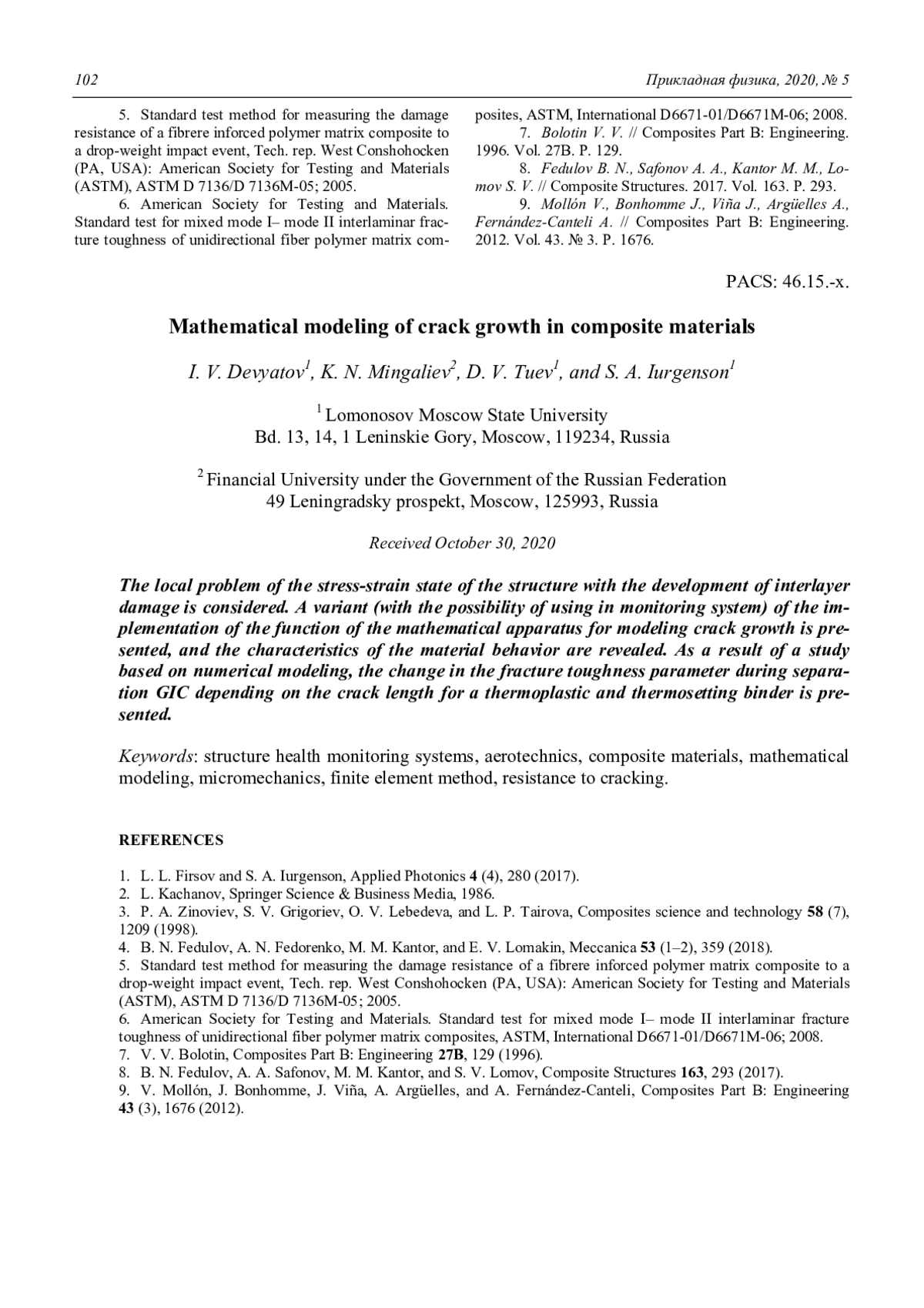 4. Fedulov B. N., Fedorenko A. N., Kantor M. M., Lomakin E. V. // Meccanica. 2018. Vol. 53. № 1–2. P. 359.