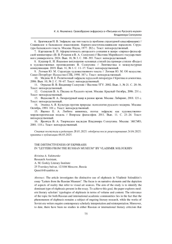 15. Яценко Е. А. Любите живопись, поэты: экфрасис как художественно-мировоззренческая модель // Вопросы философии. 2011. Вып. 11. С. 23-24. Текст: непосредственный.