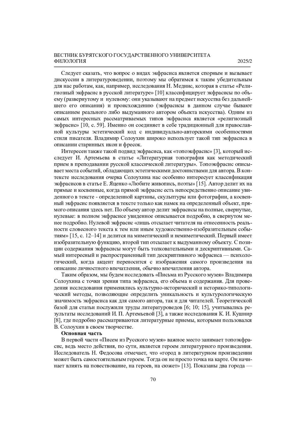 10. Меднис Н. Е. Религиозный экфрасис в русской литературе // Критика и семиотика. 2006. Вып. 10, № 2. С. 58-67. Текст: непосредственный. EDN: VULNJZ