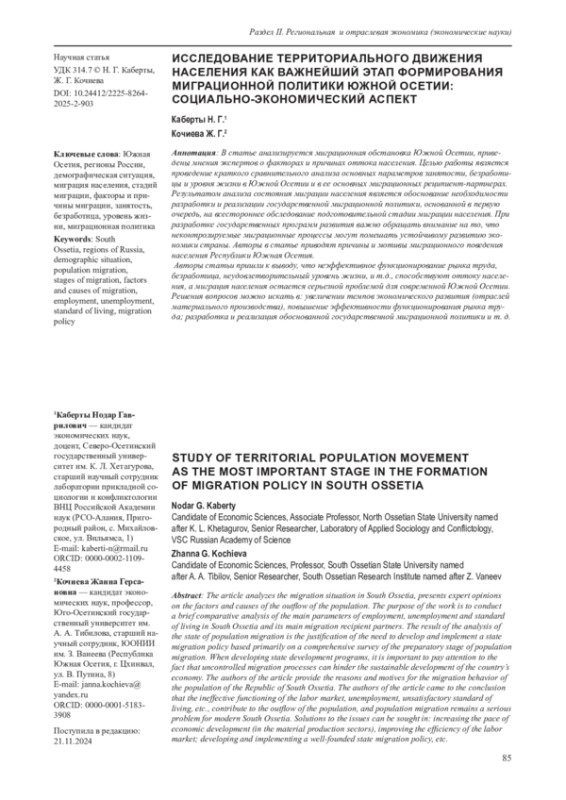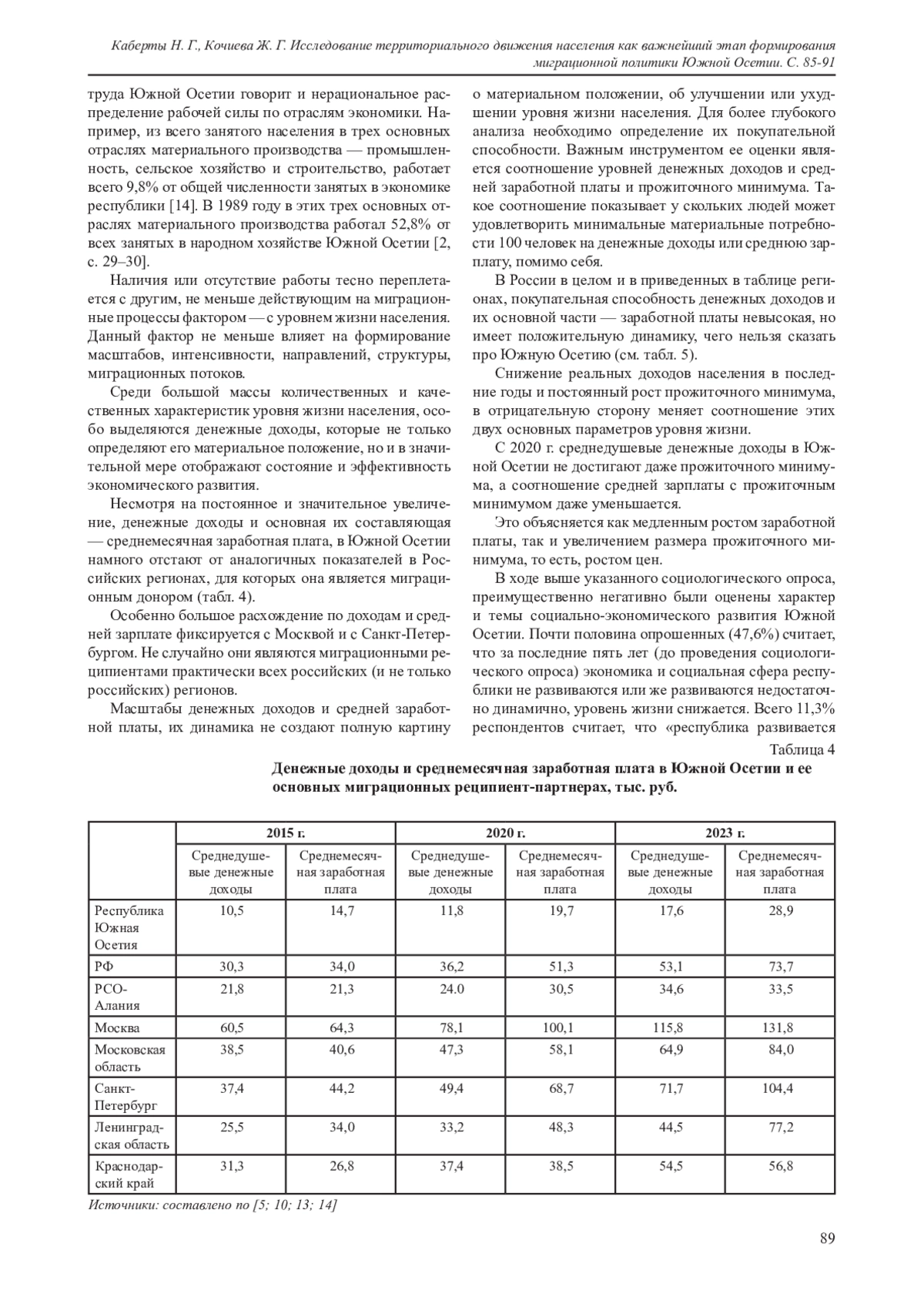 4. Каберты Н. Г., Кочиева Ж. Г. Общественное мнение о факторах и причинах миграции населения Южной Осетии // Общество: социология, психология, педагогика. 2021. № 12. С. 87-93. https://doi.org/10.24158/spp.2021.12.11