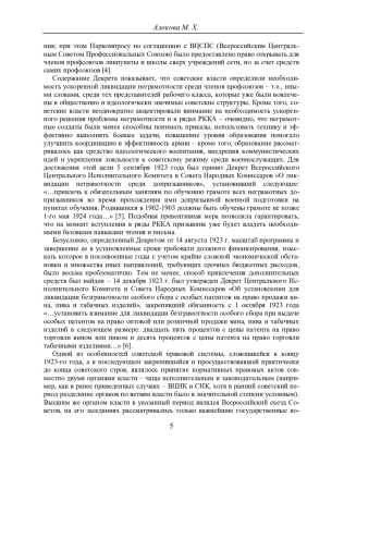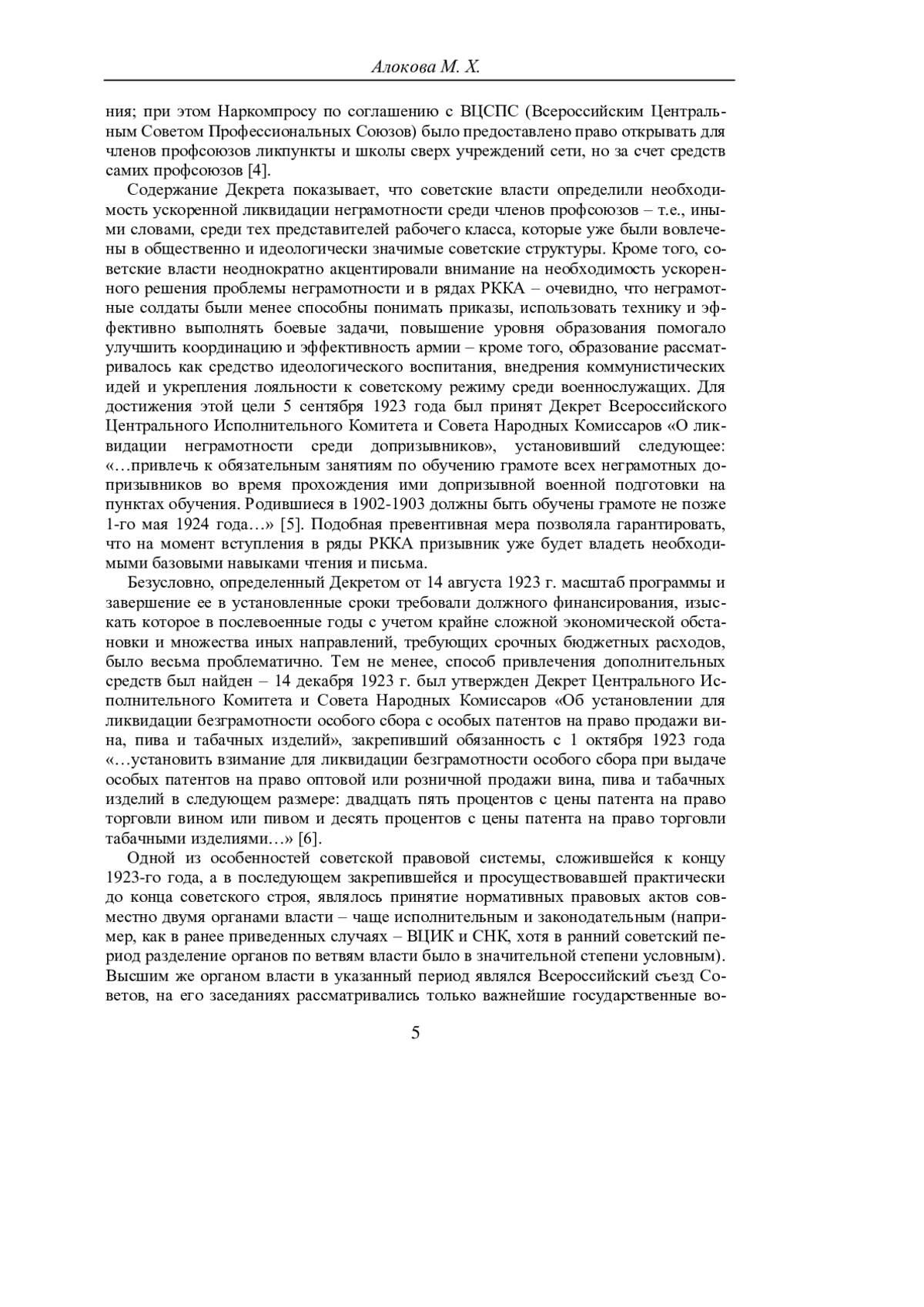 5. Декрет Всероссийского Центрального Исполнительного Комитета и Совета Народных Комиссаров. О ликвидации неграмотности среди допризывников. 5 сентября 1923 года // Распубликован в № 203 Известий Всероссийского Центрального Исполнительного Комитета Советов от 9 сентября 1923 года. - Текст: непосредственный.